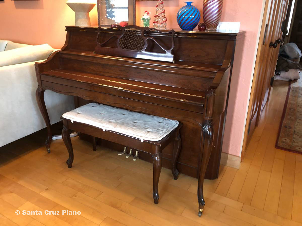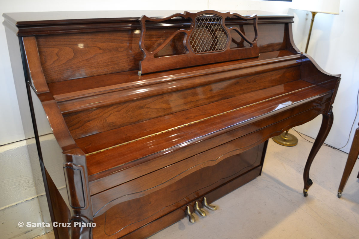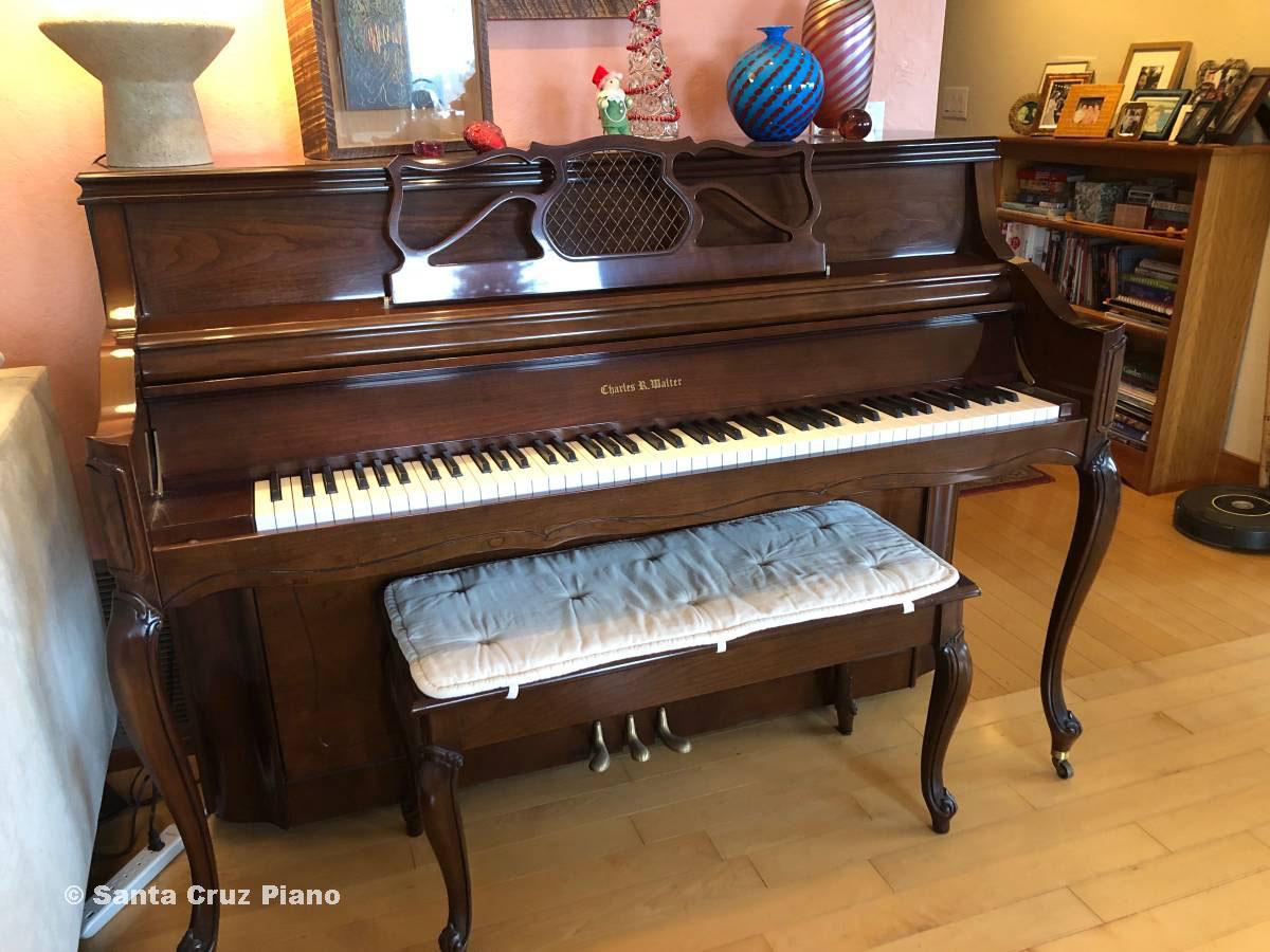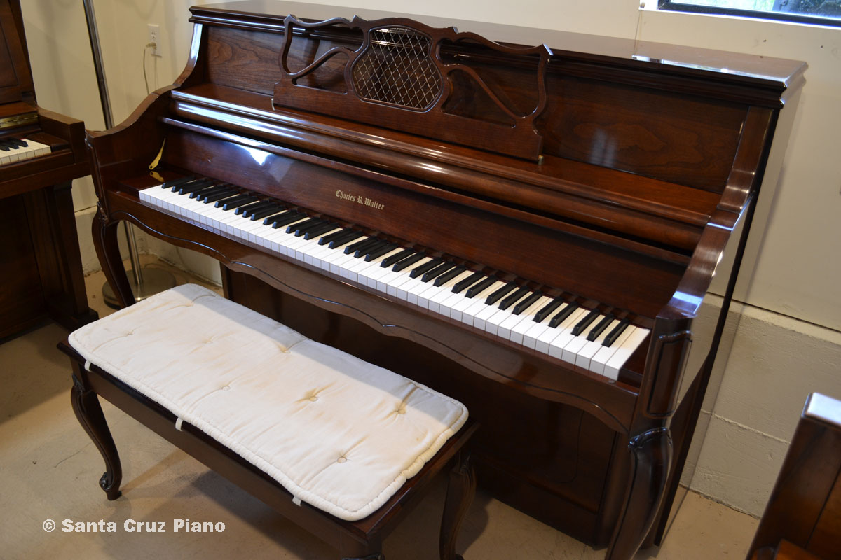 One of four existing manufacturers of pianos in the USA, the Charles Walter piano manufacturer is well respected for making quality instruments, as one would expect. Styled in French Provincial, with matching bench, this low-miles instrument will be good for many years to come. Cherry finish, original bench, and made in the USA.
