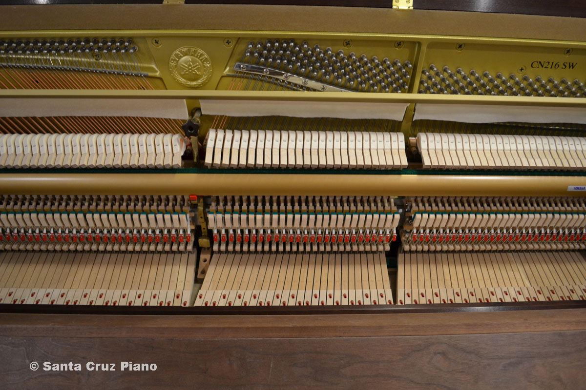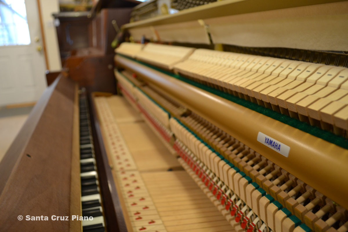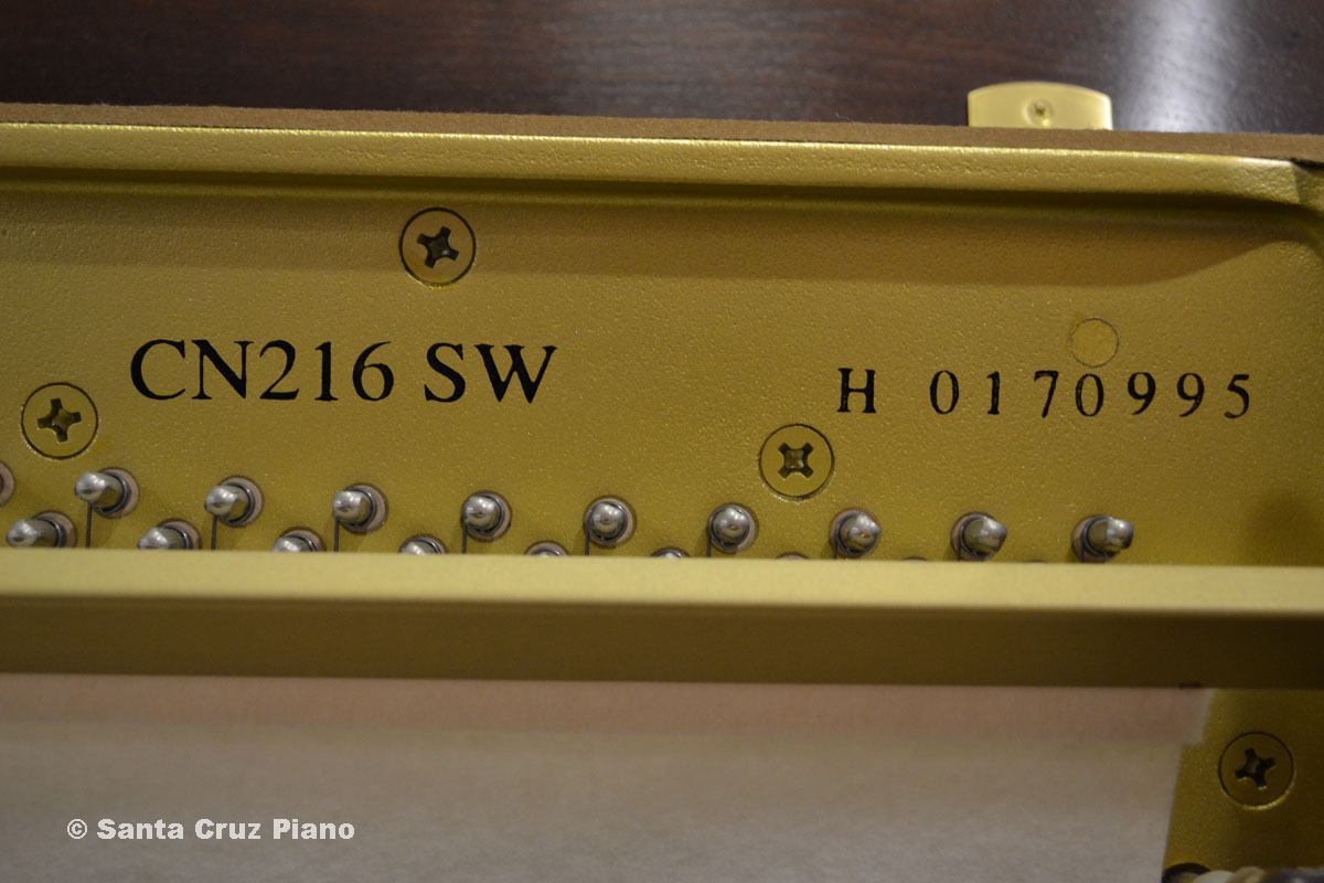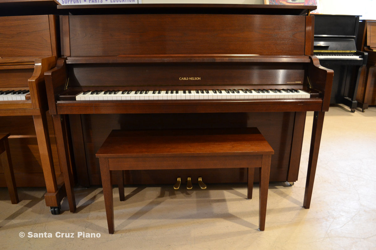 Cable-Nelson upright with an umami twist: it was designed and built by Yamaha. Satin Walnut finish, felt rail for quiet practice, and comes with original matching bench.