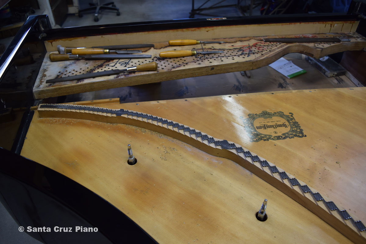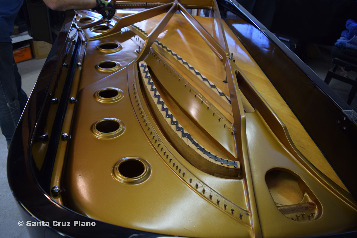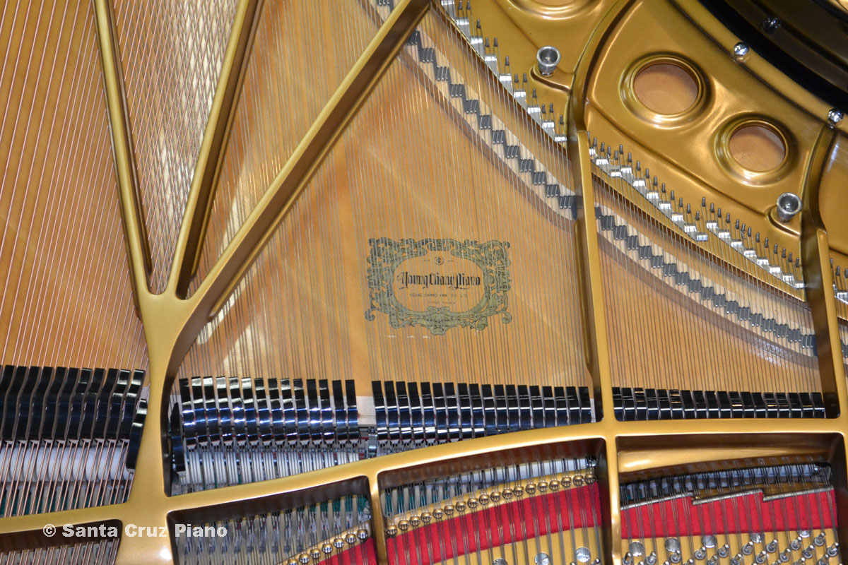 In the 80’s, Young Chang was trying really hard to make a great name for themselves, and they actually turned out a lot of nice instruments. This piano is a LOT of bang for the buck. It’s made is South Korea. We have done extensive work on this piano: it has been restrung with brand new strings including German Hellerbass wound bass strings, bridges re-notched, has a German-Made Renner action and hammers, and the metal plate was fully refinished and the interior thoroughly cleaned and polished.