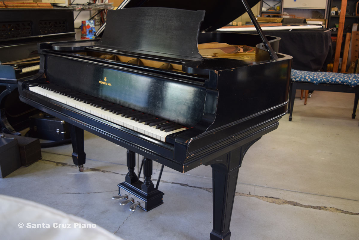 The piano plays well-enough now to hear what it can do. I would judge the soundboard to have 75-80% of its original sustain remaining. It was re-strung and refinished quite some time ago (estimate 50 years) but is fully functional as is, and of course worthy of extensive restoration if desired.