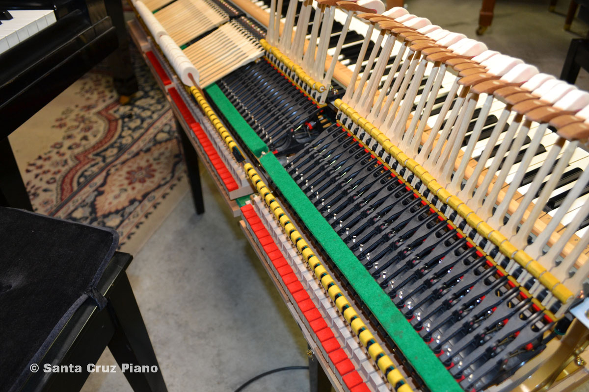 Kawai is well known for their quality instruments built in Japan. This newer piano action features Kawai’s Millennium action parts, which are appreciated by players and technicians alike for their consistency and touch. (see photos of the black action parts) A very desired feature, and only available on Kawai pianos. Comes with matching original bench.