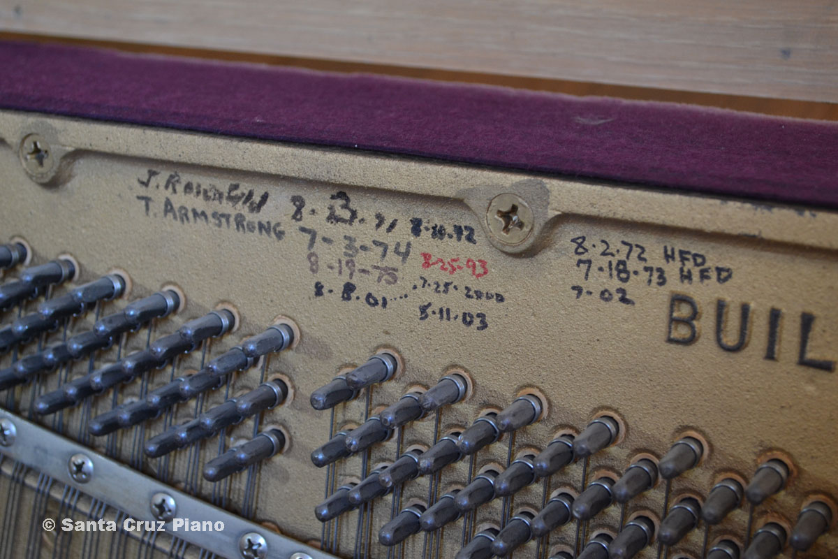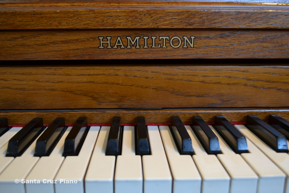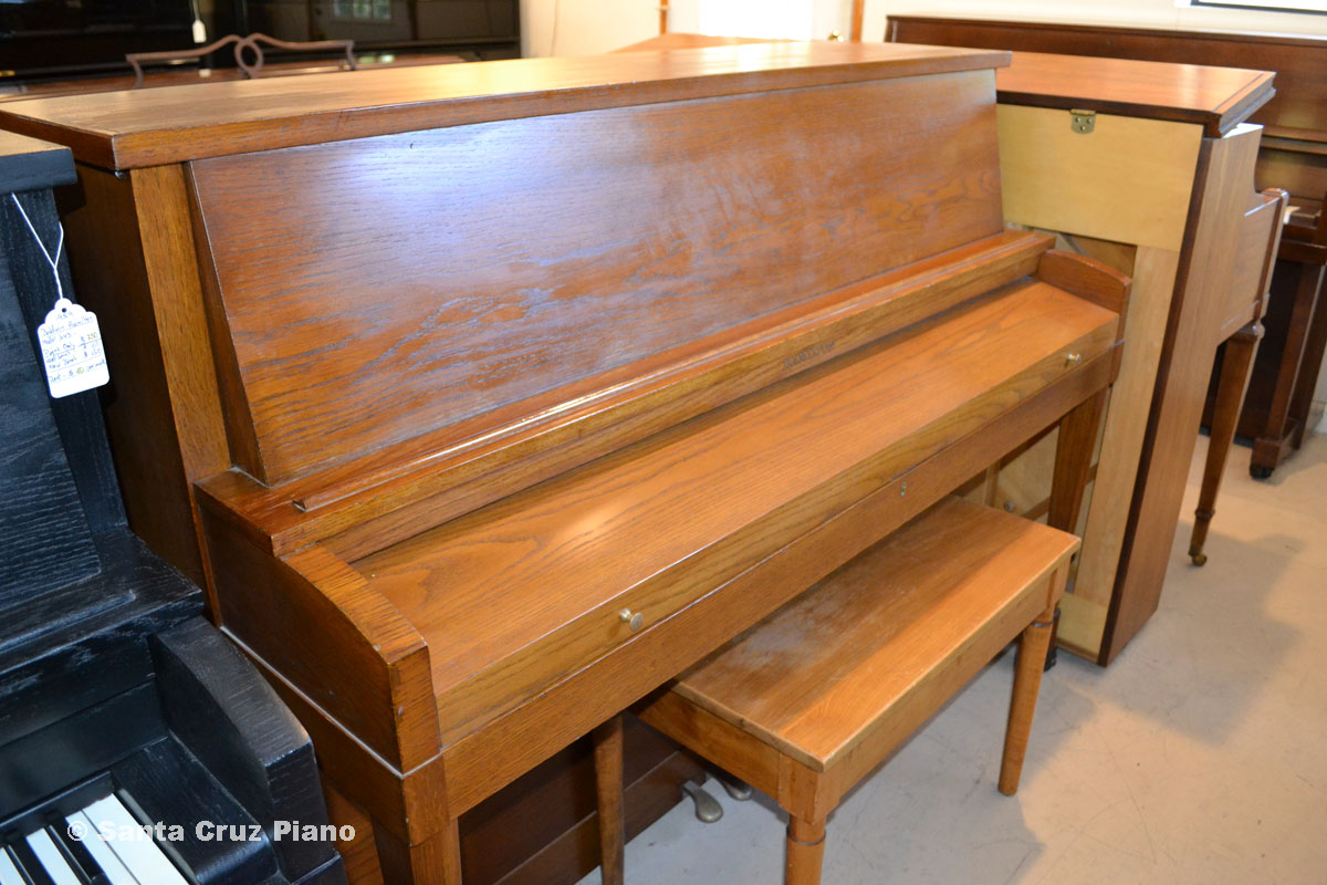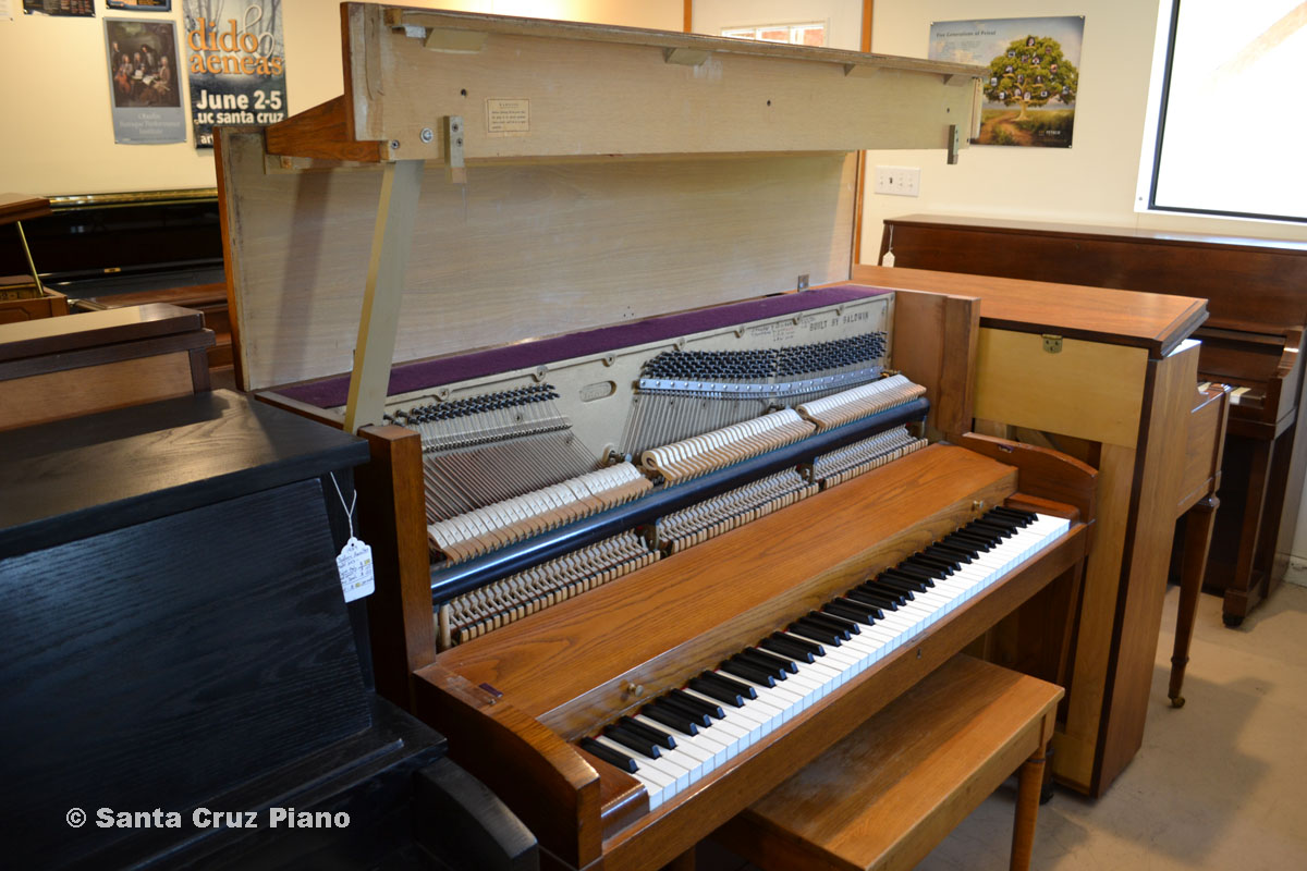 The Hamilton/Baldwin 243 model has been long appreciated in schools where projection, durability, and mobility are of utmost importance. It doesn’t have the best tone, but it’s far from the worst, and is priced fairly for that reason. As you can see in the photos, it can be opened wide for that in-your-face sound. Will work well in a studio needing that specific piano sound, or for rehearsals where a louder instrument is helpful. Comes with matching bench. Made in USA.