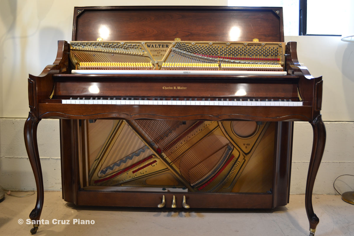 One of four existing manufacturers of pianos in the USA, the Charles Walter piano manufacturer is well respected for making quality instruments, as one would expect. Styled in French Provincial, with matching bench, this low-miles instrument will be good for many years to come. Cherry finish, original bench, and made in the USA.