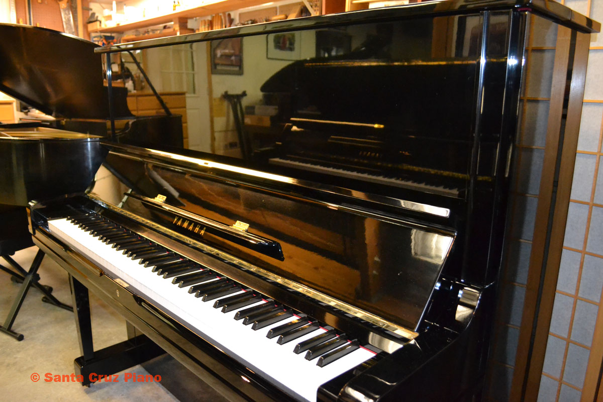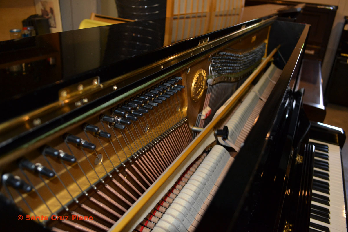 An excellent quality full-size upright piano, Made in Japan. Freshly detailed, and spruced up in every way to be ready for decades of music making in your home. Has mute rail for quiet practice and comes with matching bench. Sounds very full and lively.