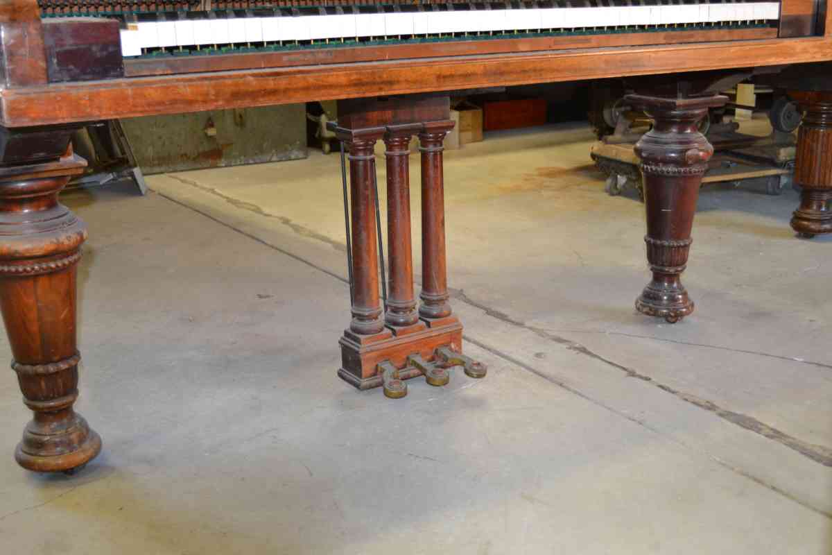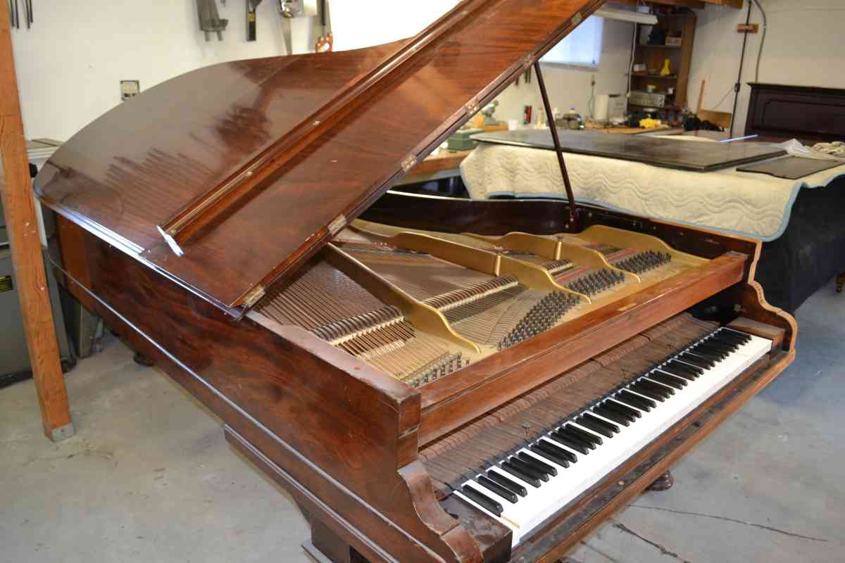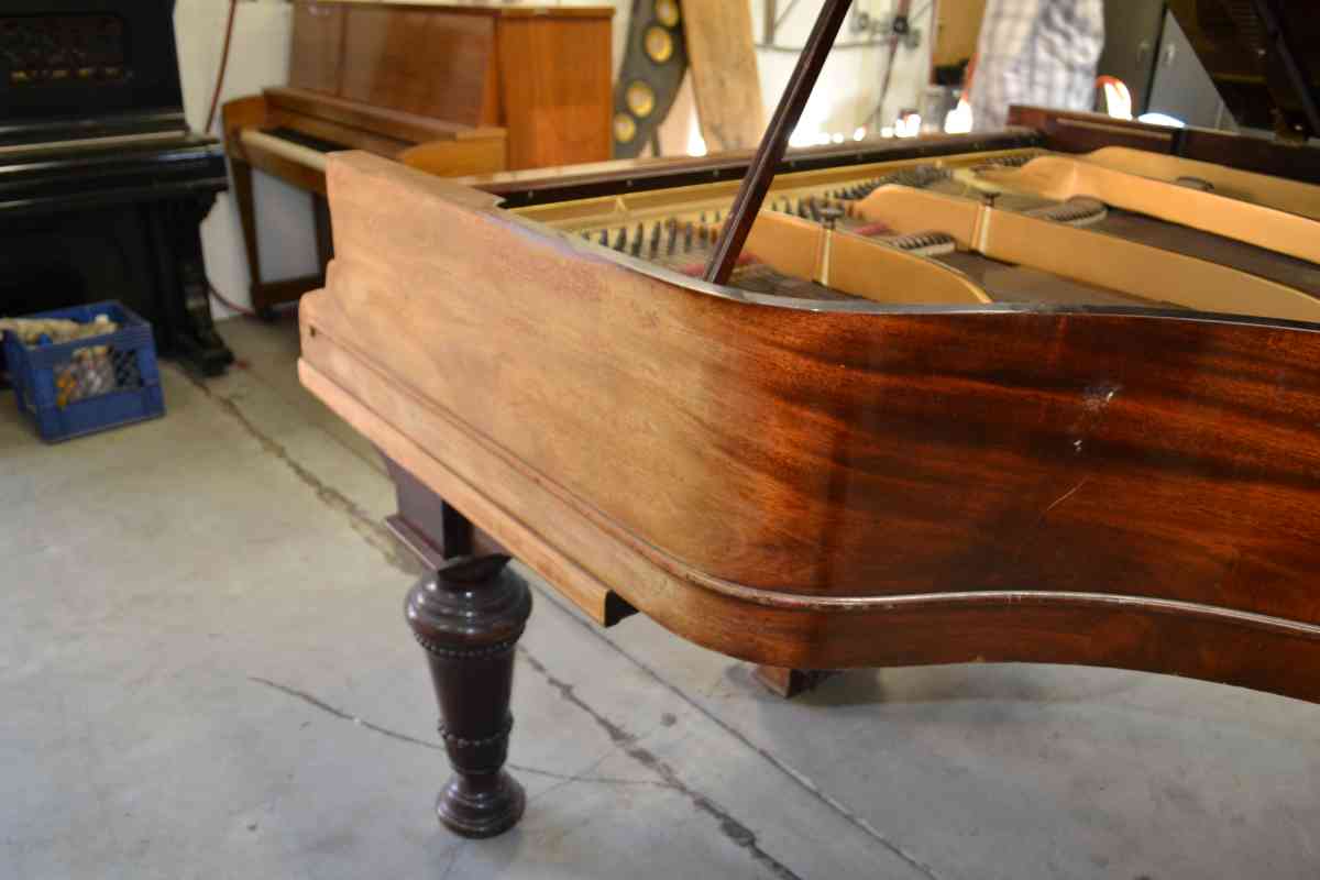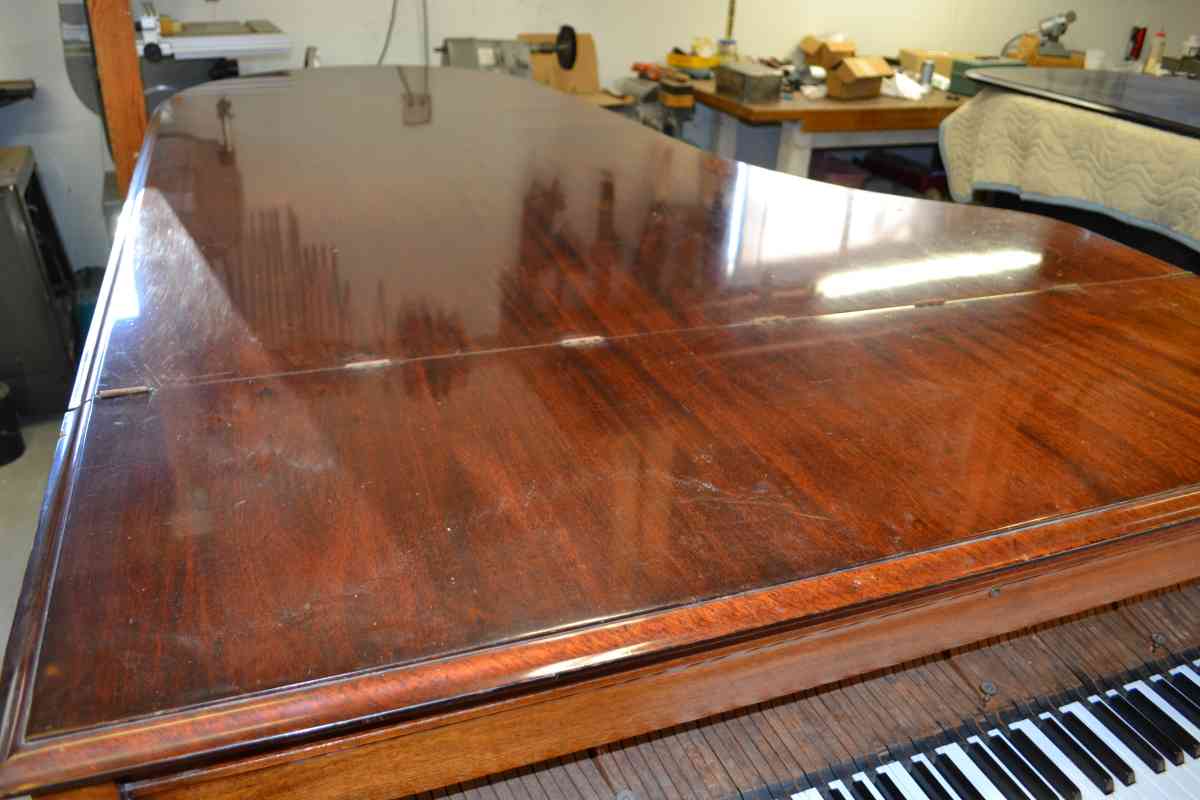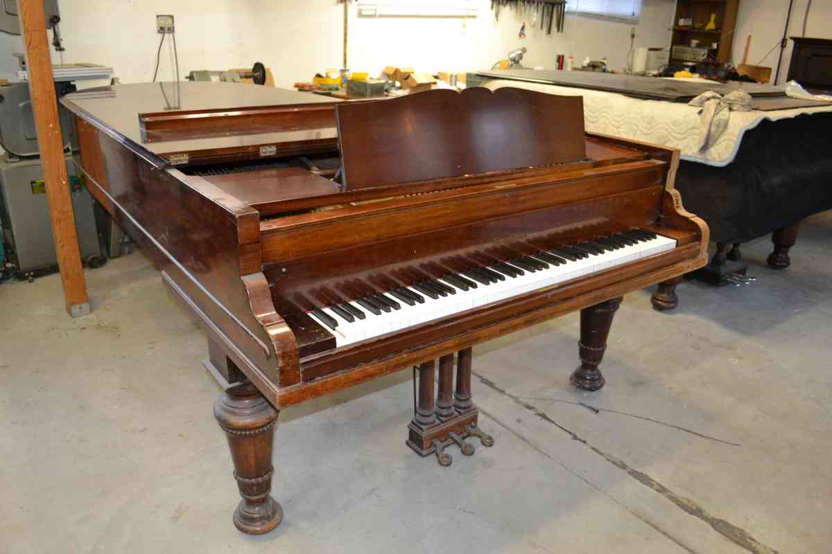 9 foot concert grand 1912. Mahogany. Needs a pinblock. Finish repair on right front. Soundboard good. Agraffes to note 88.