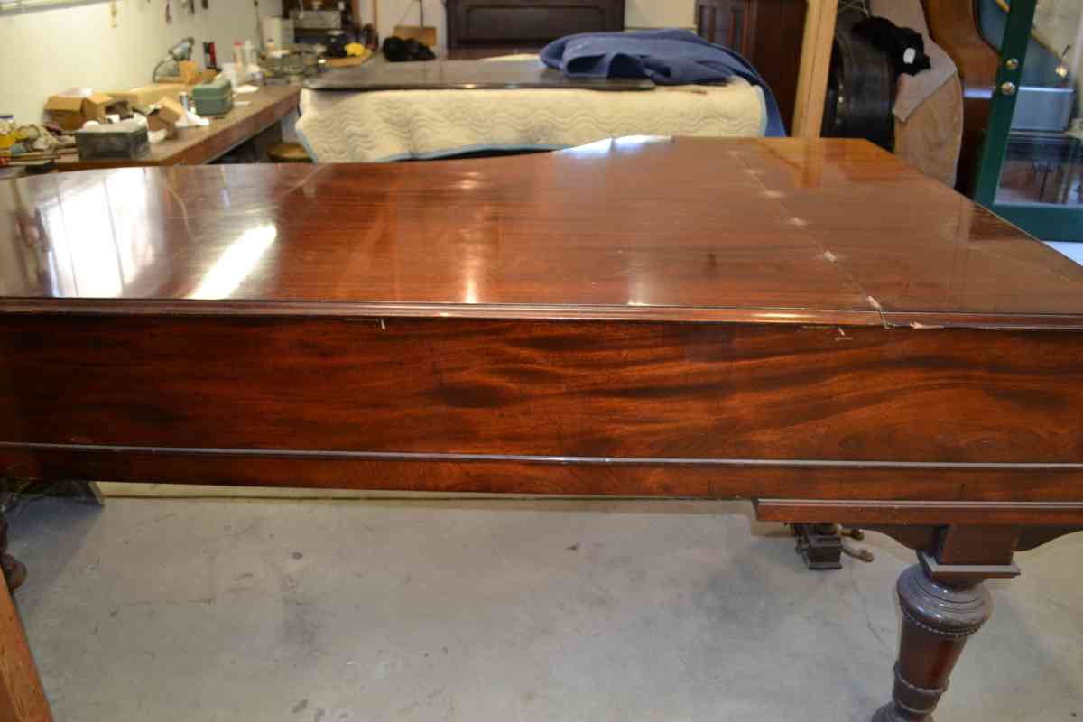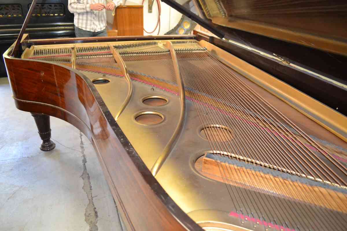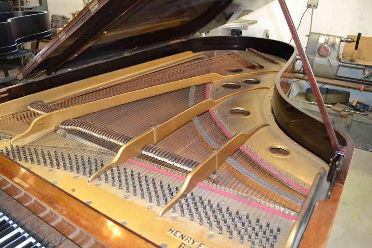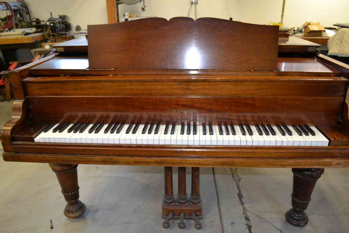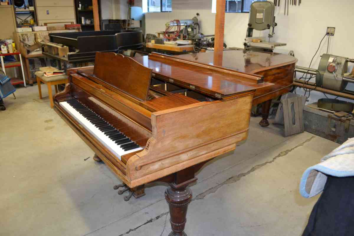 9 foot concert grand 1912. Mahogany. Needs a pinblock. Finish repair on right front. Soundboard good. Agraffes to note 88.